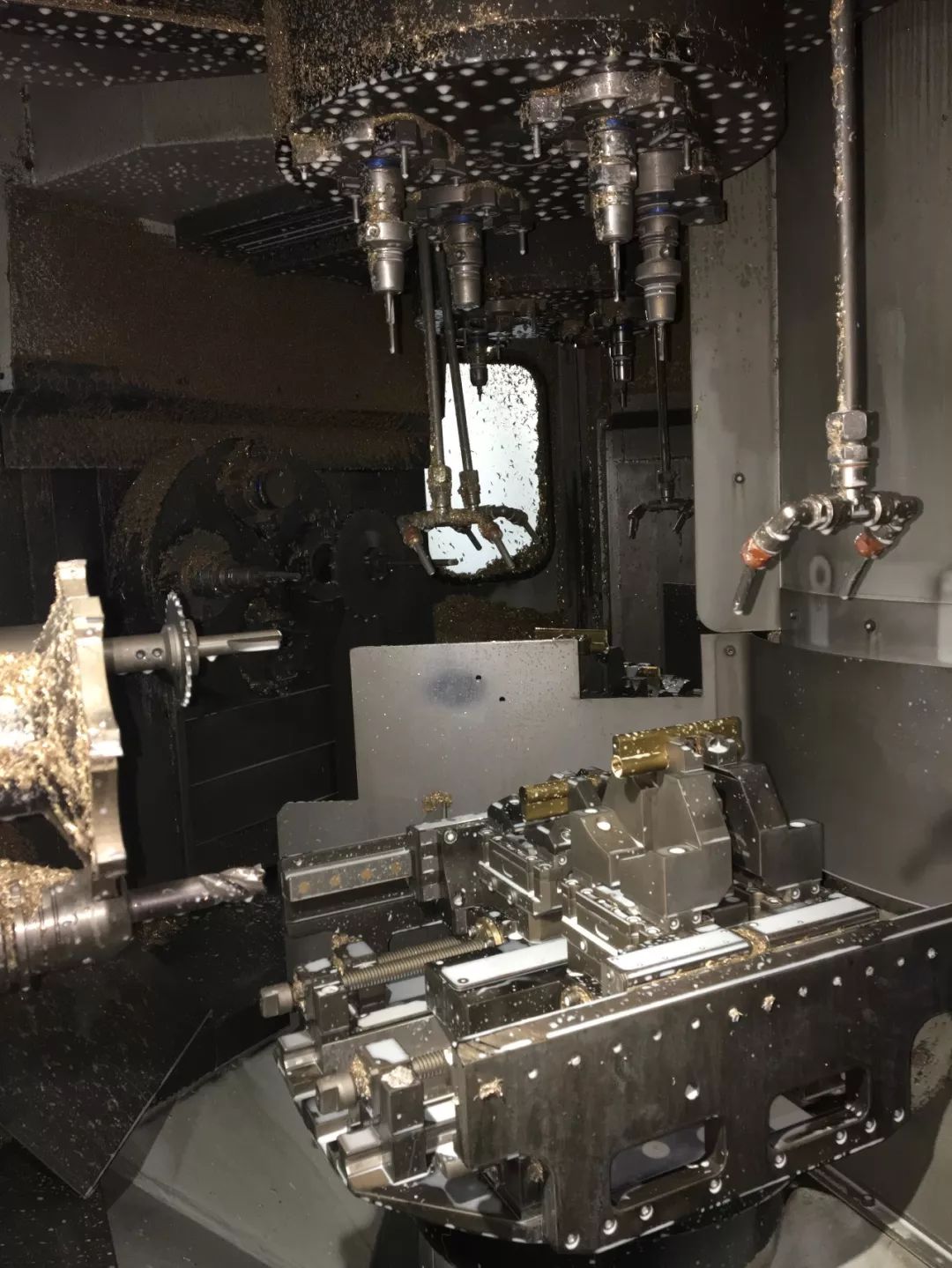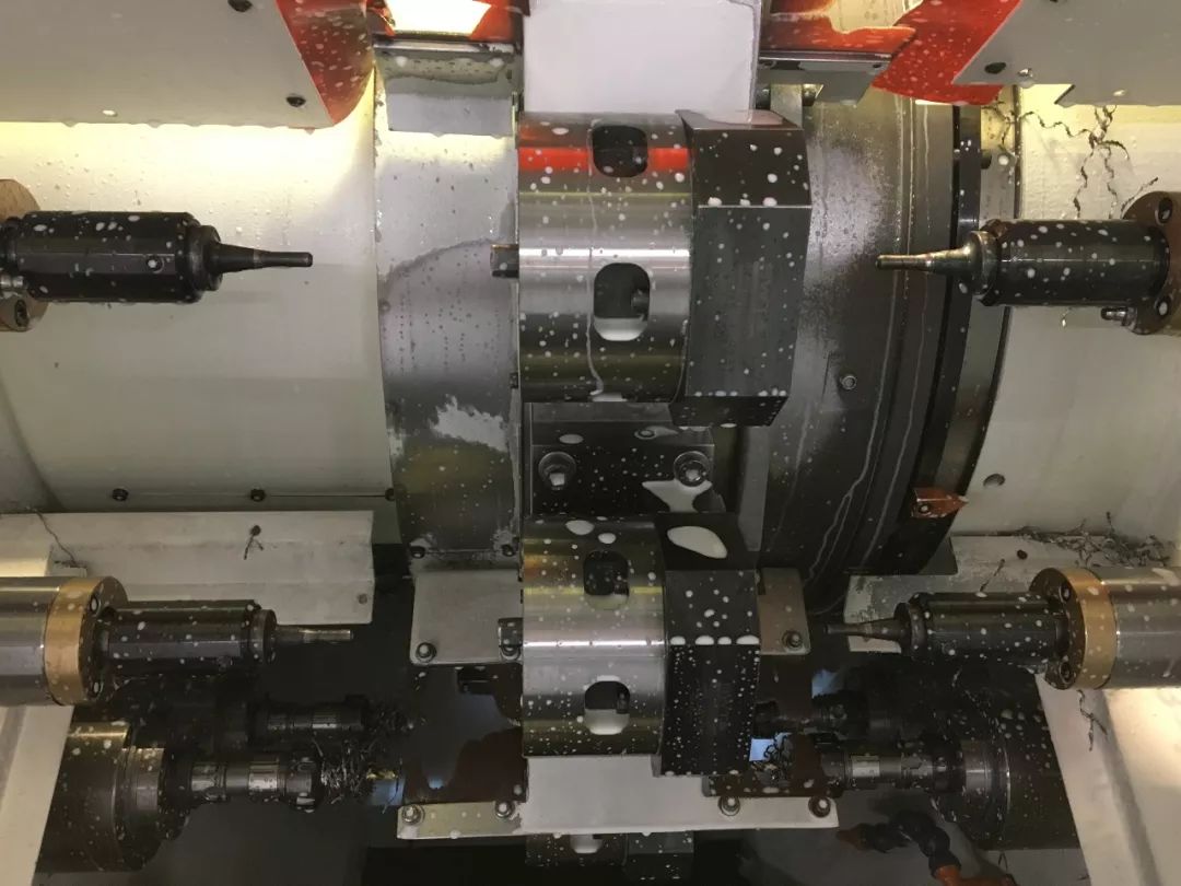 一台机床有两个加工站,即两个独立NC通道 车床刀塔有部分带动力刀柄 |